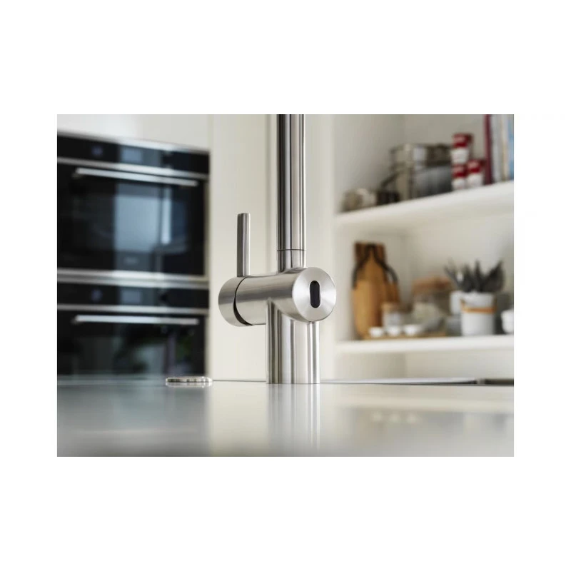 ATLAS NEO SENSOR , Douchette mono-jet , Levier bas -6°/90° , Tout Inox , INOX , Aérateur Laminar , Technologie SENSOR , Rotation bec 180° , Embase 45mm , Perçage 35mm , Débit 9,7ltr/min , Batterie et boitier de contrôle inclus , FRANKE , Garantie 5 ans , Disponibilité pieces détachées 7 ans