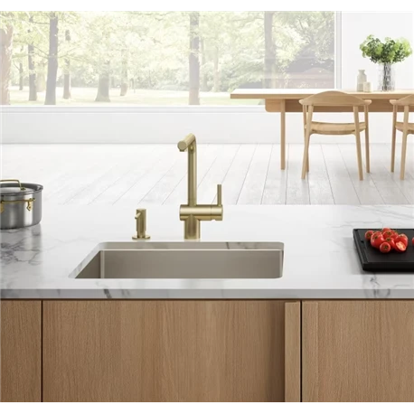 Distributeur de savon Atlas référence 230512 Reflet d’Or de Franke, tout inox, bec rotatif à 360°, embase ∅50 mm, perçage ∅24-35 mm, capacité 350 ml, remplissage par la tête du distributeur. Concernant le traitement de surface de grande qualité, il confère une résistance et une durée de vie accrues au mitigeur. Cette technologie rend les mitigeurs de couleur résistants à l’usure, aux produits chimiques, à la corrosion et aux rayures. Code EAN: 7612986230512. Code FUN: 112.0681.200. Les coloris du distributeur de savon Atlas sont compatibles avec les mitigeurs de la gamme Atlas et Eos Neo.