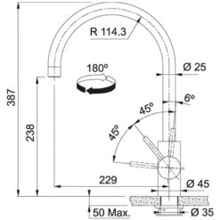 EOS NEO , Bec , Levier bas 0°/90° , Tout Inox , PVD NOIR , Aérateur Laminar , Rotation bec 180° , Embase 45mm , Perçage 35mm , Débit 12,8ltr/min , FRANKE , Garantie 5 ans , Disponibilité pieces détachées 7 ans