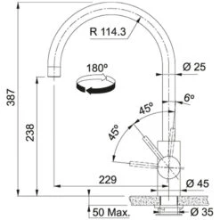 EOS NEO , Bec , Levier bas 0°/90° , Tout Inox , PVD ANTHRACITE , Aérateur Laminar , Rotation bec 180° , Embase 45mm , Perçage 35mm , Débit 12,8ltr/min , FRANKE , Garantie 5 ans , Disponibilité pieces détachées 7 ans