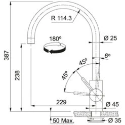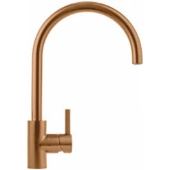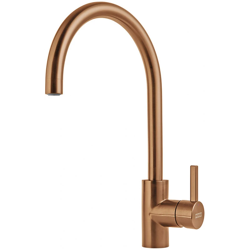 EOS NEO , Bec , Levier bas 0°/90° , Tout Inox , PVD CUIVRE , Aérateur Laminar , Rotation bec 180° , Embase 45mm , Perçage 35mm , Débit 12,8ltr/min , FRANKE , Garantie 5 ans , Disponibilité pieces détachées 7 ans