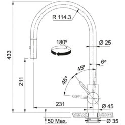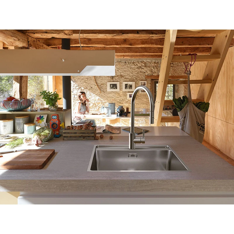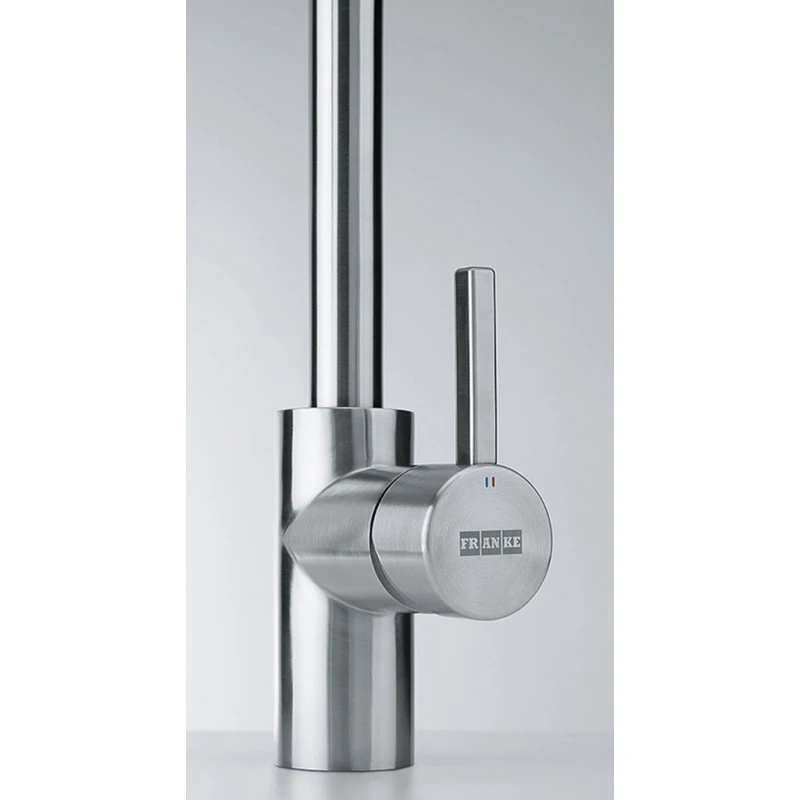 EOS NEO , Douchette double-jet , Levier bas 0°/90° , Tout Inox , INOX , Aérateur Laminar , Rotation bec 180° , Embase 45mm , Perçage 35mm , Débit 10,4ltr/min , FRANKE , Garantie 5 ans , Disponibilité pieces détachées 7 ans