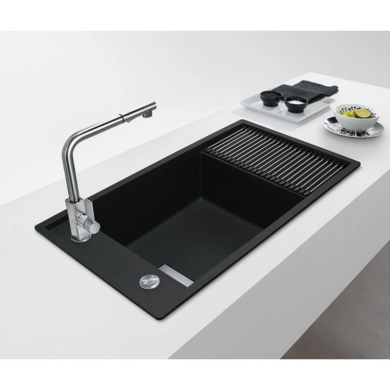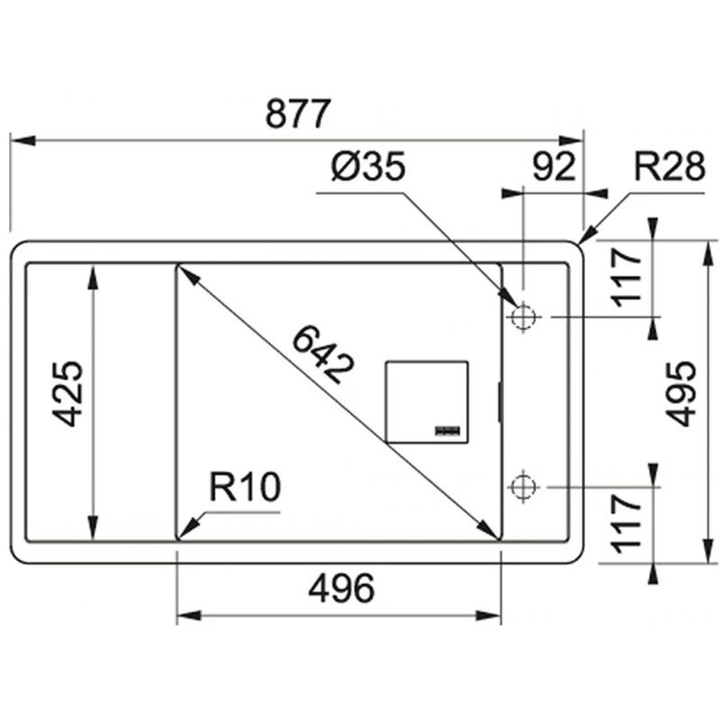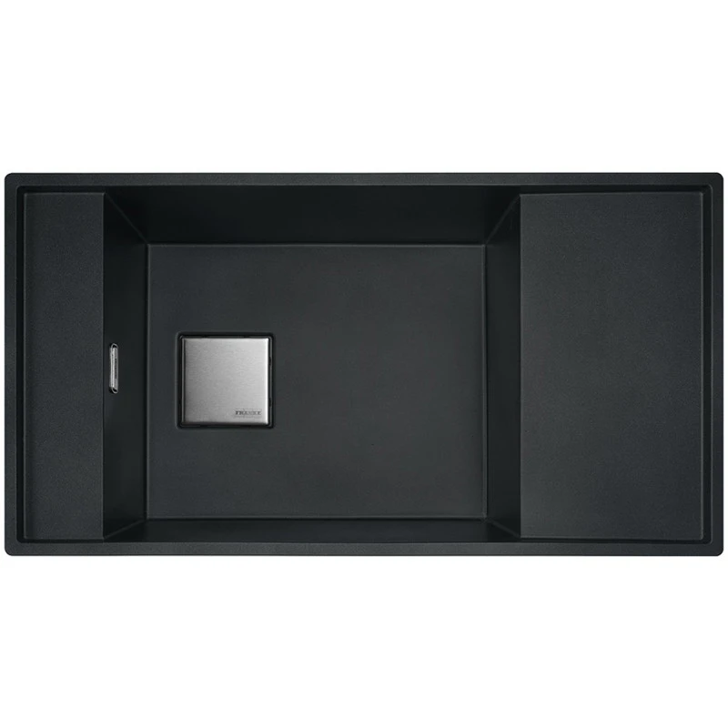 FSG 611-88 , FRAMES , Evier FRAGRANIT , ONYX , 1 cuve , Avec égouttoir (réversible) , A encastrer , 877x495mm , Vidage automatique , Bonde 90mm , Bouton push inox , Cache-bonde carré inox inclus , Trop-plein discret , Plage de robinetterie sur le côté , Déc.845x463mm (R20) , Caisson 600mm , Pré-perçé (2 trous) , Rollmat 220x400mm inox inclus , FRANKE , Garantie 10 ans , Disponibilité pieces détachées 7 ans