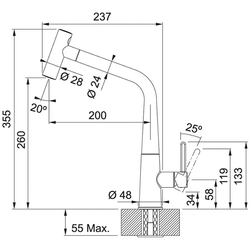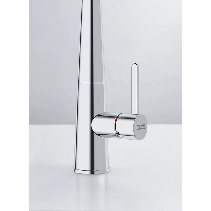 ICON , Douchette double-jet , Levier bas 0°/90° , Chrome , CHROME , Technologie Laminar , Rotation bec 360° , Embase 50mm , Perçage 35mm , Débit 9ltr/min , FRANKE , Garantie 2 ans , Disponibilité pieces détachées 7 ans