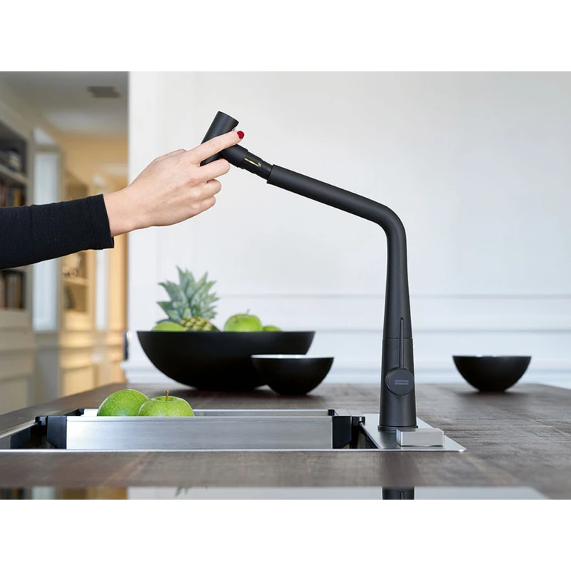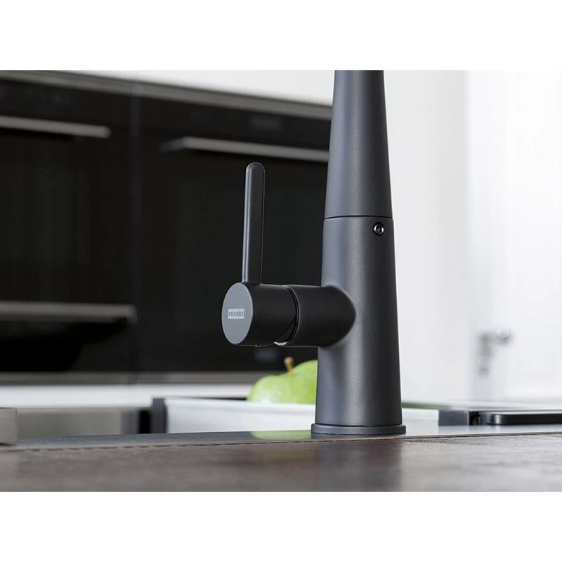 ICON , Douchette double-jet , Levier bas 0°/90° , Chrome , NOIR MAT , Technologie Laminar , Rotation bec 360° , Embase 50mm , Perçage 35mm , Débit 9ltr/min , FRANKE , Garantie 2 ans , Disponibilité pieces détachées 7 ans