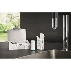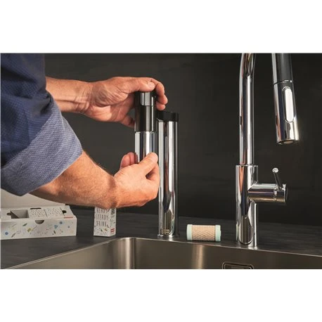 Lot de 3 Cartouches Vital Haute performance 792264 cartouche filtrante Franke, durée de vie de 500 l, soit 3 mois d’autonomie (pour une consommation moyenne). Retient 99,9% des bactéries et virus. Filtre toutes les impuretés (rouille, micro-plastique, métaux lourds…) et même le chlore. Supprime les goûts et les odeurs. Conditionnées par 3. Code EAN: 7612985792264. Code FUN: 112.0607.498.