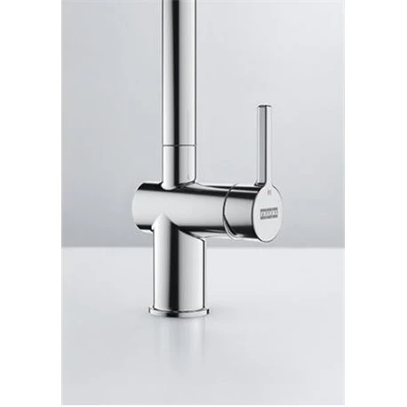 Mitigeur cuisine Active L à bec Chromé ref 056051 de Franke, rotation du bec sur 180°, levier de commande 0/100°, débit 8,3 L/min. Hauteur 312 mm. Cartouche éco utilisant jusqu’à 50% d’eau en moins. Code FUN: 115.0653.298. Code EAN: 7612986056051