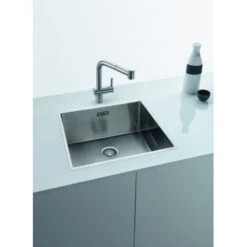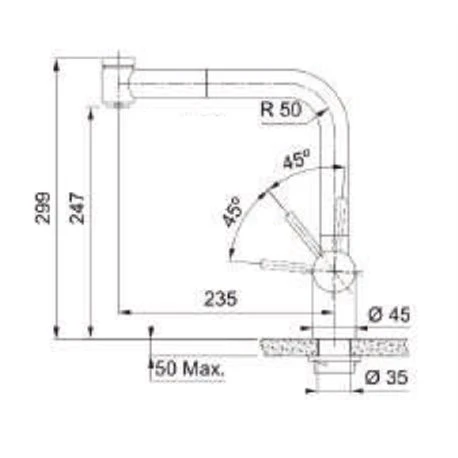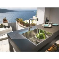 Mitigeur cuisine à douchette double jet de Franke, Atlas neo tout inox ref 444934 coloris inox. Rotation du bec sur 180°. Embase ø 45 mm. Perçage ø 35 mm. Levier de commande -6°/ +90°; Débit 9,7 L/min (3 bars). Flexible de douchette tressé. Système de fixation avec corps fileté. Idéal pour adapter la force du jet en fonction des besoins : rincer la vaisselle avec un jet fort, utiliser un jet plus doux pour laver les fruits et légumes. Douchette extractible pour une amplitude de mouvement renforcée, parfait pour atteindre les coins de la cuve. Code EAN: 7612985444934, code FUN: 115.0521.441
