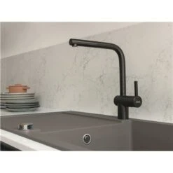 Mitigeur cuisine à douchette monojet Atlas Neo tout inox de Franke ref 552646, coloris inox noir. Il s’agit d’un traitement de surface de grande qualité qui confère une résistance et une durée de vie accrues au mitigeur. Cette technologie rend nos mitigeurs de couleur résistants à l’usure, aux produits chimiques, à la corrosion et aux rayures.Rotation du bec sur 180°. Embase ø 45 mm. Perçage ø 35 mm. Levier de commande 0° / +90°. Débit 9,7 L/min (3 bars). Flexible de douchette tressé. Ecoulement laminaire. Système de fixation avec corps fileté. Code EAN: 7612985552646, code FUN: 115.0550.427