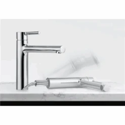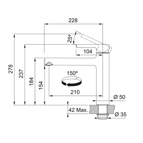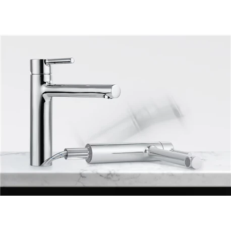 Mitigeur cuisine Centro solution fenêtre de Franke, coloris chrome, escamotable à bec, ref 767088. Rotation du bec sur 150°. Embase ø 50 mm. Perçage ø 35 mm. Levier de commande -45°/+45°. Débit 15,2 L/min (3 bars). Cartouche ø 35 mm. Système de fixation à corps fileté. Cartouche Eco. Ecoulement laminaire. Code EAN: 7612985767088, code FUN: 115.0600.137