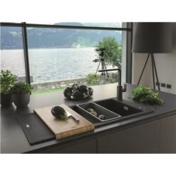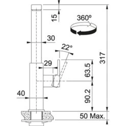 Mitigeur cuisine Mythos ref 552653 Inox noir de Franke, à bec, rotation du bec sur 360°. Embase 47 x 47 mm. Perçage ø 35 mm. Levier de commande : 50°/ 50°. Débit : 13 ltr / min. Écoulement laminaire. Système de fixation avec corps fileté. Code FUN: 115.0550.441. Code EAN: 7612985552653