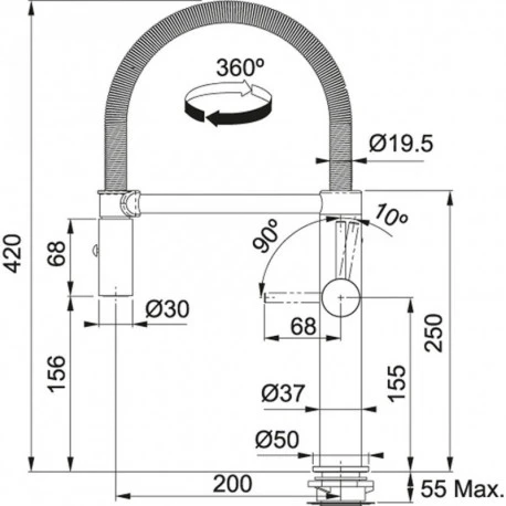Mitigeur cuisine Pescara L 695224 à douchette double-jets Chrome Franke, rotation du bec sur 360°. Embase ø 46 mm. Perçage ø 35 mm. Levier de commande : -10° / 90°. Débit: 9 ltr / min. Cartouche ECO. Douchette en laiton avec support aimanté. Flexible à ressort en acier chromé. Hauteur 420 mm. Pour le levier de commande, le Mitigeur cuisine est livré avec une tige chromée et une autre noir mat que vous pouvez intervertir au gré de vos envies. Code EAN: 7612981695224. Code FUN: 115.0393.974.