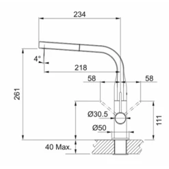Mitigeur cuisine Sinos à douchette monojet coloris chrome de Franke, ref 918317. Rotation du bec sur 360°. Embase ø 50 mm. Perçage ø 35 mm. Levier de commande +45°/-45°. Débit: 8,8 L/min (3 bars). Flexible de douche tressé. Code FUN: 115.0259.975, code EAN: 7612980918317
