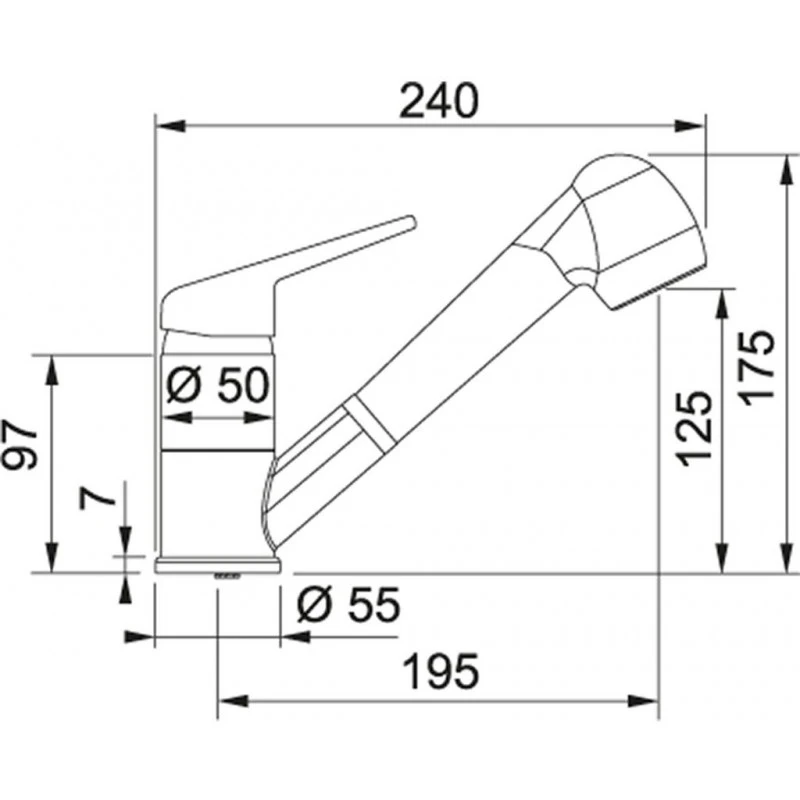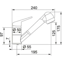 NOVARA PLUS , Douchette double-jet , Levier haut , Chrome , ONYX , Rotation bec 90° , Embase 55mm , Perçage 35mm , FRANKE , Garantie 2 ans , Disponibilité pieces détachées 7 ans