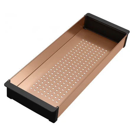 Panier égouttoir coloris cuivre en inox, ref 083378 de Franke. Compatible avec les éviers BXM. Dimensions 429 x 156,4 x 53,5 mm. Code FUN: 112.0655.341, code EAN: 7612986083378