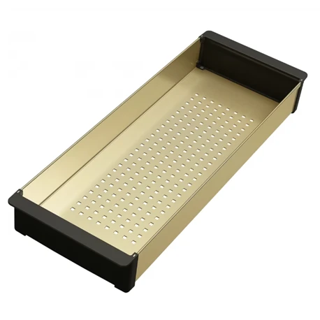 Panier égouttoir coloris reflet d’or en inox, ref 083361 de Franke. Compatible avec les éviers BXM. Dimensions 429 x 156,4 x 53,5 mm. Code FUN: 112.0655.240, code EAN: 7612986083361