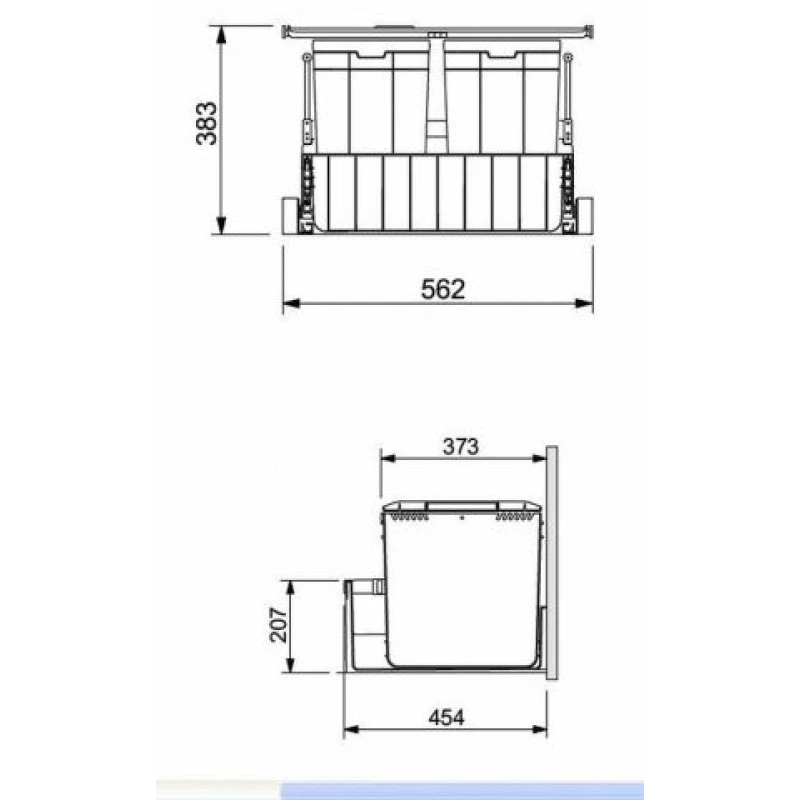 Tri des déchets – SORTER DUO 60 – pour meuble de 600mm – a fixer sur porte coulissante – contenance 44 litres (2 bacs de 22 litres) – comprenant un couvercle avec filtre a charbon actif –