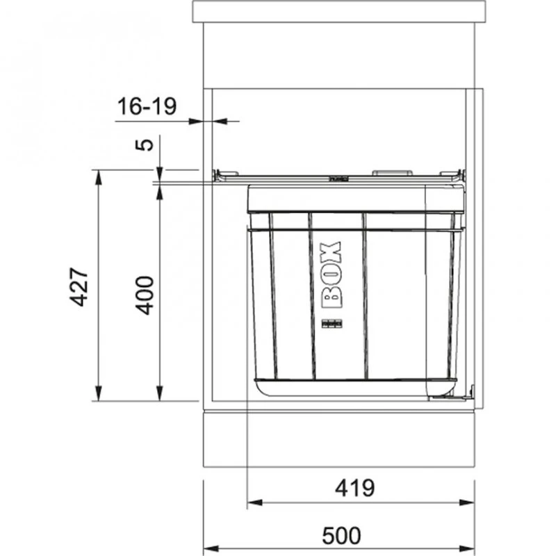 Tri des déchets – SORTER SOLO 50 – pour meuble de 500mm – a fixer a l’intérieur du meuble – ouverture automatique – contenance 40 litres (1bac) –