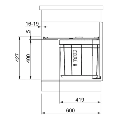 Poubelle cuisine Sorter solo 600 référence 160197 1 bac 40 Litres de Franke A fixer à l’intérieur du meuble, dimensions (HxlxL): 562 mmx427 mmx390 mm. 1 bacs : 40 Litres, Avec couvercle. Fixation de la tablette sur les 2 montants du meuble. Livré avec système de fixation. Couvercle avec filtre à charbon intégré. Ouverture automatique avec l’ouverture de la porte (triangle entraînant la poubelle). Fixation de la poubelle directement à l’intérieur du meuble (pas de poids sur la porte). Code EAN: 7612981160197. code FUN: 121.0307.572.