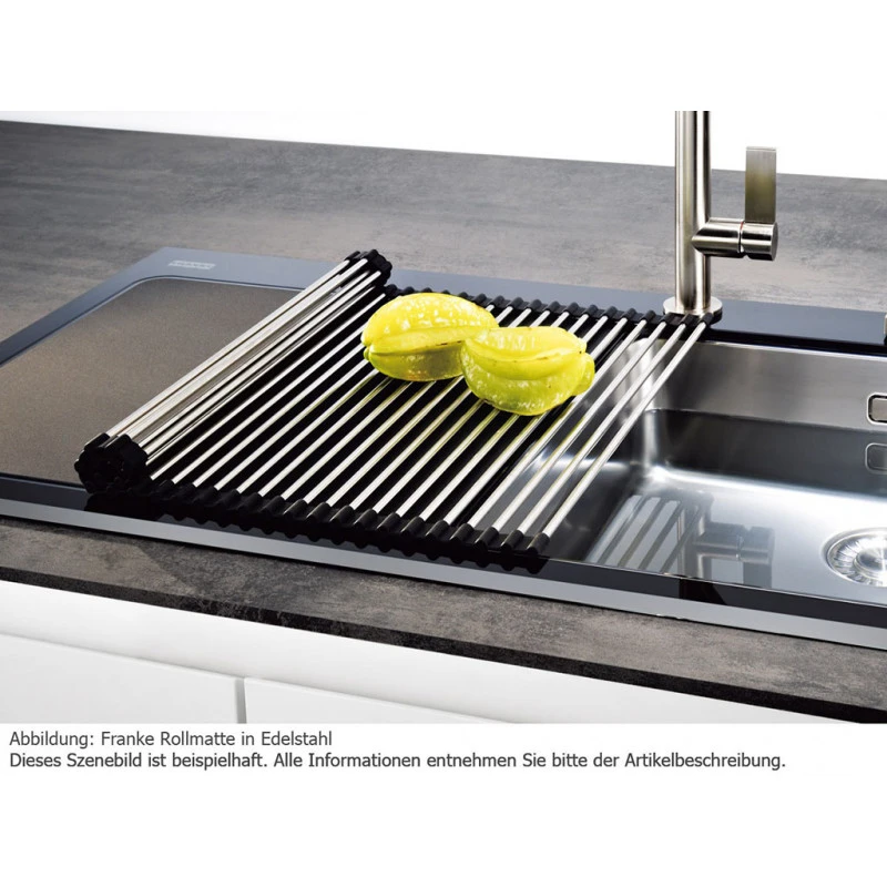 Egouttoir enroulable, 468x440mm, avec tiges en acier inox et néoprene noir