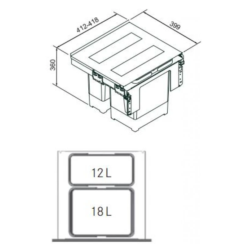 Tri sélectif de déchets avec 1 bac de 12 litres, 1 bac de 18 litres