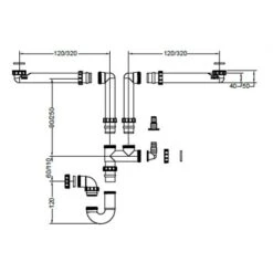 Tubulure 2 cuves avec siphon et prise lave-vaisselle sortie 40×49 mm, pour vidages premium, référence 434256 de Franke, code EAN: 7612985434256. Code FUN: 112.0519.112.